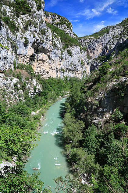 Pour les vues depuis le fond des gorges, il faut parcourir soit le sentier Blanc Martel qui relie le chalet de la Maline au Point Sublime, soit le sentier de l'Imbut qui offre une grande variété de paysages sur une distance assez courte. A noter toutefois qu'il est actuellement fermé pour cause d'éboulements.
