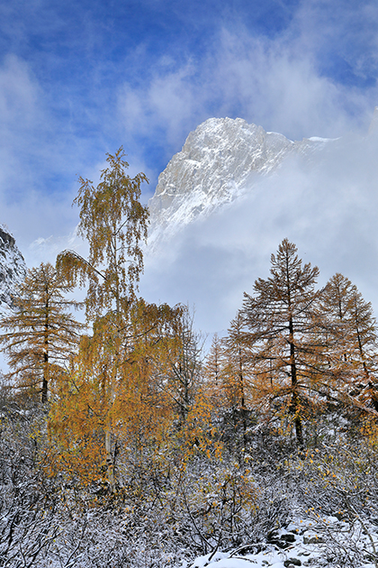 Celle ci bénéficie des lumières du lever de soleil. La meilleure saison est l'automne quand les mélèzes ont leur teinte dorée et que la Barre est bien enneigée.