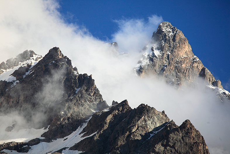 Depuis le village de la Grave, outre la Meije on a également de belles vues sur ses glaciers.
