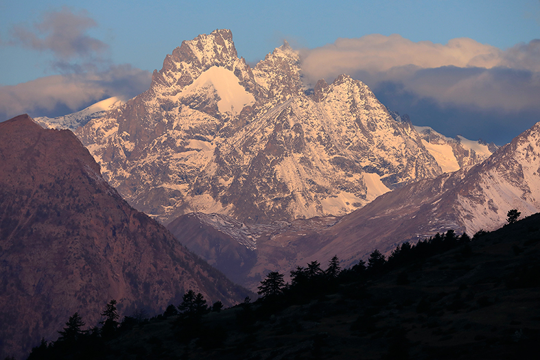 La vue sur la Meije se dévoile à environ 4 kms du sommet du col (vue ci dessus) un peu avant le parking de la bergerie Saint Joseph, point de départ de la randonnée pour le Petit et Grand Aréa, au sommet desquels on a également une vue sur le massif.