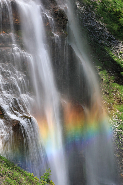 La météo idéale est un temps nuageux ou brumeux, toutefois par temps ensoleillé il est possible d'observer le matin un arc en ciel sur la cascade de la Pleureuse (photo ci dessus).