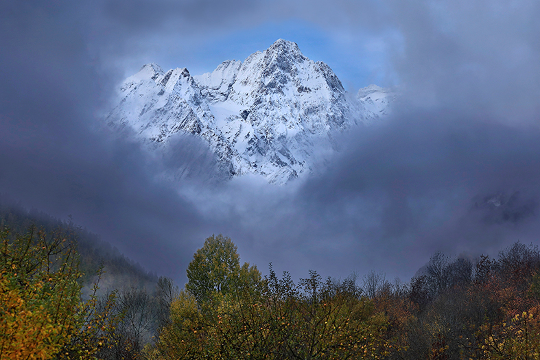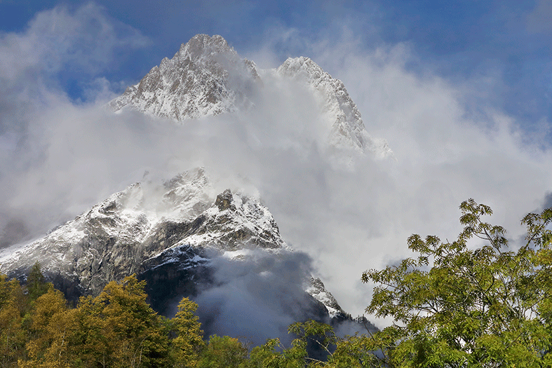 C'est depuis le village de Vallouise que l'on a la plus belle vue sur le Pic de Bonvoisin. La meilleure saison est la fin d'automne quand celui ci est enneigé.